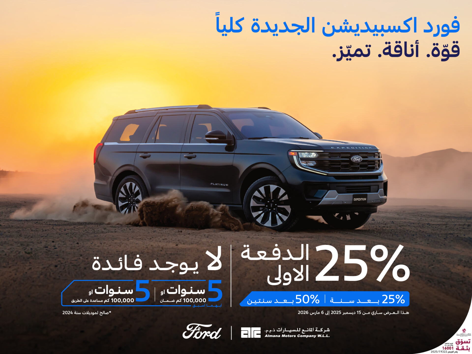 فورد اكسبيديشـن الجديدة كلياً قوة. أناقة. تميز.