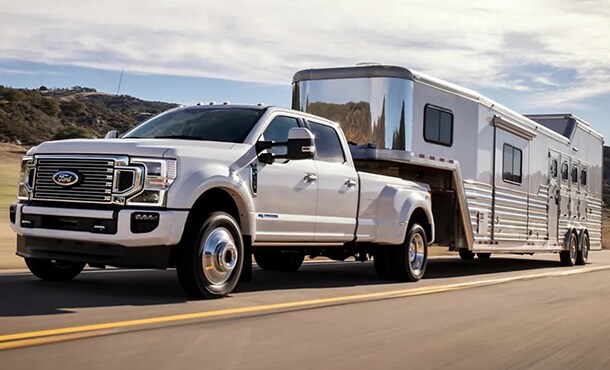هل أنت بحاجة إلى سحب حمولات ثقيلة للغاية؟ ما عليك إلاّ استخدام فورد سوبر ديوتي الذي يتميّز بتصنيف السحب مع سقاطة بنية «عنق الإوزة» الذي يبلغ 16783 كلغ وتصنيف السحب مع «العجلة الخامسة» الأفضل في فئته الذي يبلغ 14741 كلغ.* يتميّز F-250 لسنة 2022 بتصنيف السحب مع سقاطة بنية «عنق الإوزة» والعجلة الخامسة الأفضل في فئته الفرعية لمحرّكات الديزل والتي تبلغ 10342 كلغ.** يتميّز سوبر ديوتي أيضاً ببنية ثانويّة لـ«العجلة الخامسة» و«عنق الإوزة» مثبّتة بالقاعدة وهي تتوافق مع مجموعات تجهيزات سقّاطة «العجلة الخامسة» ومجموعات تجهيزات سقّاطة «عنق الإوزة» التي يتمّ تقديمها في المصنع وعبر الأكسسوارات المخصّصة من فورد.
